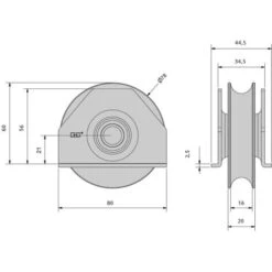 Monture à Souder Pour Portail Coulissant – Galet Ø80 Mm à Gorge Ronde Ø16 Mm – 200 Kg