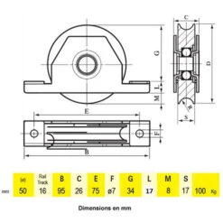 Roue Encastrée Gorge Ronde – Ø 100 Mm – Pour Rail 16 Mm – Torbel Industrie