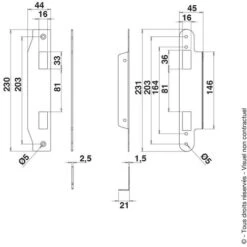Gâche Et Contreplaque En Inox Pour Serrure à Encastrer Avec Butée Intégrée. Blanc Ral 9010