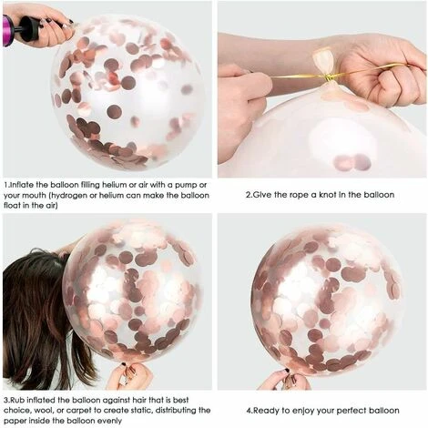 Ballons de fête à confettis en or rose Souhaitez-vous que la fête d’anniversaire de vos enfants soit extraordinairePensez-vous à un thème de fête en or rose pour votre douche de bébé ou la décoration de votre douche nuptialeCes ballons confettis en or rose seront parfaitement décorés pour votre fête. Il existe trois couleurs. Les ballons en latex 50pcs sont assez bon pour créer un bouquet distinctif en forme de cœur en forme de cœur, d’arc ou de ballon. Ils peuvent se remplir d’hélium et d’air. Ces ballons à paillettes de fête peuvent donner une très belle scène à vos soirées. Cela va sûrement étonner vos invités: des confettis ont été mis dans les ballons. Ces ballons scintillants rendent votre fête attrayante, romantique et heureuse. Spécification: