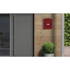 Boîte aux lettres individuelle extérieure de petit taille en acier. De conception compacte avec serrure et entrée de courrier en façade, facilement accessibles. Elle s’intègre parfaitement à tout style et type de maison.
