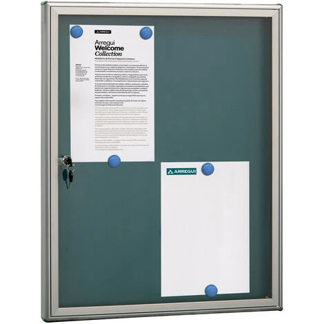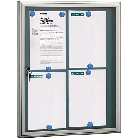 ARREGUI PAN72 Panneau D’affichage En Aluminuim, Vitrine D’affichage Avec Serrure à Clé, Fond Aimanté, 8 Aimants, 69 X 55 X 5 Cm, Format 4 X A4 Argent