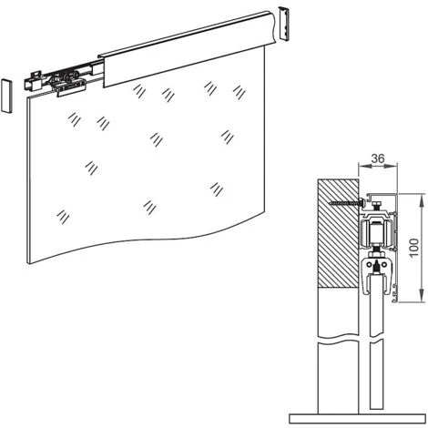 Bandeau L=2 m + embouts en aluminium anodisé pour système SLID’UP 190 pour une épaisseur de porte jusqu’à 25 mm.