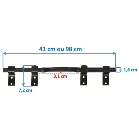 Barre anti-intrusion en fer plein pour volet 2 vantaux : renforce sa résistance. Livrée complète avec supports coudés, supports anti-soulèvements, contre-plaques (Augmente la résistance de la barre anti-intrusion et évitent la dégradation du volet) et visserie. Faiblement encombrent, pose très facile, idéal pour sécuriser un volet contre l’effraction, barre de sécurité anti-crochetage et anti-soulèvements. Caractéristiques techniques : 1 fléau plein de 41cm ou 98cm Couleur : Noir 2 supports simples 2 supports anti-soulèvements Barre de sécurité livrée avec notice et gabarit de montage Visserie fournie Utilisation : Barre de sécurité pour volets de fenêtre et porte fenêtre Préconisation : pour les volets 2 vantaux 100 cm choisir les barres de 98 cm Côtes : Voir photo N°3