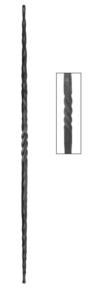 Barreau martelé carré de 16mm et hauteur 1000mm en fer forgé avec un motif
