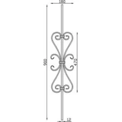 Barreau rond lisse ø14mm et hauteur 1000mm en fer forgé avec un motif