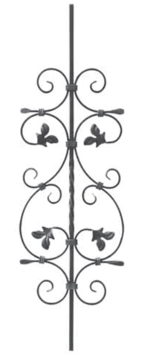 Barreau torsadé au centre en carré de 12mm et hauteur 950mm x 280 mm motif feuilles