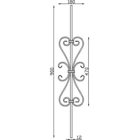 - Carré de 12mm et hauteur de 900mm x largeur 180 mm.