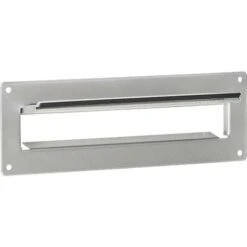 Le cache-entrées PORTE-FENÊTRE PORTE 796 peut être utilisé de manière universelle à partir d’une épaisseur de porte ou de paroi d’au moins 20 mm. L’ouverture nécessaire pour le montage est de 50 à 67,5 mm de haut et de 257 à 268,5 mm de large. Le cadre en aluminium solide et le rabat à éjection en tôle d’acier galvanisé sont revêtus d’un revêtement en poudre de haute qualité. Le matériel de montage est fourni.