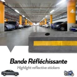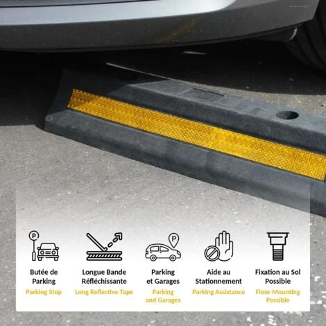 BANDES REFLECHISSANTES – La butée de parking caoutchouc dispose de bandes réfléchissantes sur chacune des faces afin de mieux la visualiser la nuit et de bien se garer dans l’axe.