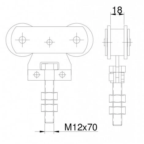 Utilisé pour le déplacement des portes coulissantes. Il s´installe dans la partie supérieure de la porte et se déplace dans le rail. Il est fourni avec toute la visserie nécessaire et une tige de 4×70 pour faciliter la rotation de la vis.