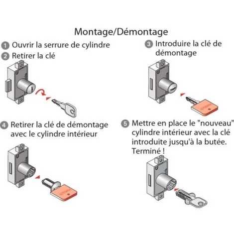 La clé de démontage n’a aucune fonction de fermeture. Serrure et accessoires (tringle, rosace, gâches) + cylindre + clé passe + clé de démontage
