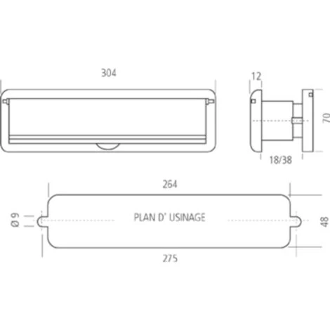 – Cette entrée de boite aux lettres est large de 304 mm et haute de 70 mm.