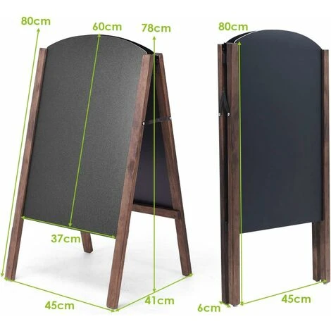 Le panneau publicitaire est robuste et stable, il a un double visage pour écrire ou dessiner. Il y a 2 tailles au choix : 45 x 60 x 80 cm et 60 x 80 x 101 cm. Il peut se plier rapidement et a des pieds en caoutchouc, il est facile à nettoyer et n’est pas si lourd. Si vous possédez un restaurant, un bar, un magasin de bonbons, un magasin de vêtements ou un magasin de fleurs, ce sera votre meilleur choix pour afficher des menus et des informations promotionnelles.