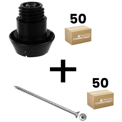 Lot de 50 supports de rail réglable 15/32 mm SIXBOX + 50 vis bois Ø5,0×60 mm tête fraisée TX