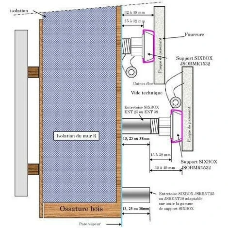 Adaptabilité et universalité du Système Solidité et fiabilité de la fixation. Vide technique assuré entre le film d’étanchéité et la plaque de plâtre (aucune traversée du film).