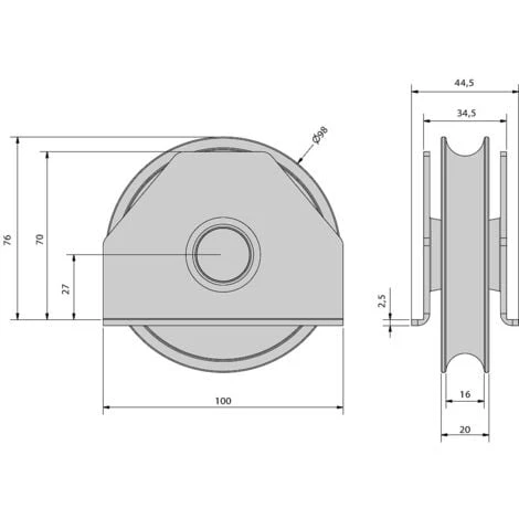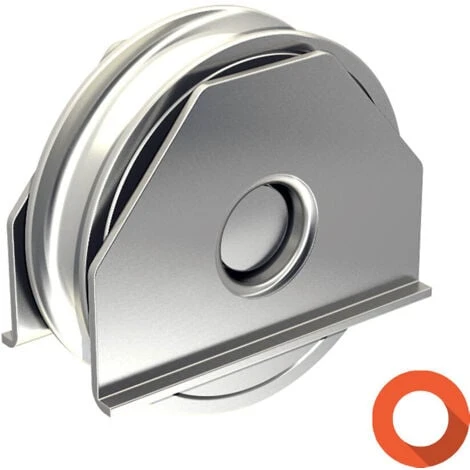 Monture à souder avec galet / roue à gorge ronde en acier zingué blanc pour portail coulissant jusqu’à 400 kg.