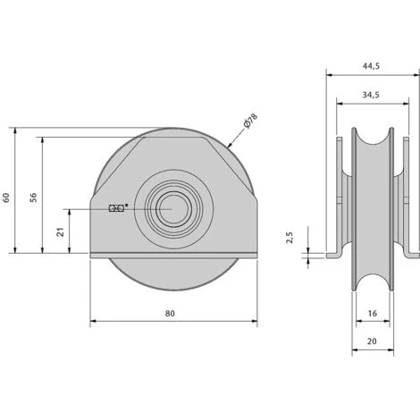 Diamètre gorge ronde : 16 mm.