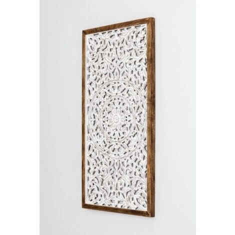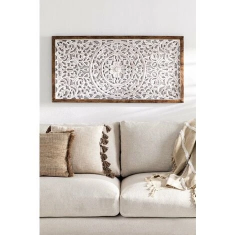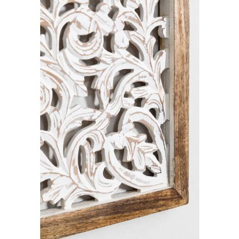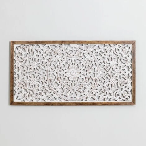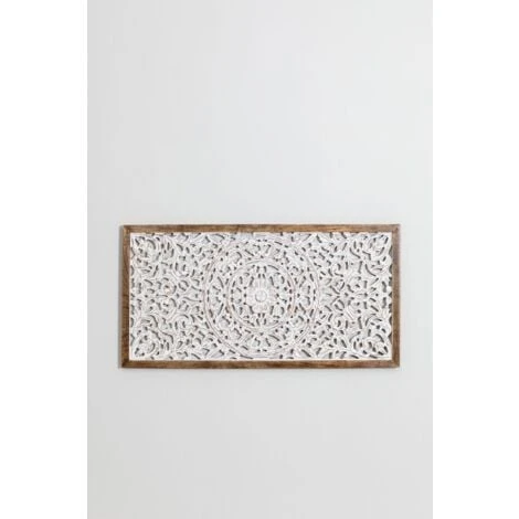 Les panneaux sculptés sont un excellent choix comme décoration murale, ils apportent un air frais à la pièce tout en lui donnant de la personnalité. Le Panneau Décoratif (122×63 cm) Asniki est fabriqué en MDF, un matériau résistant et robuste. Son cadre en bois de manguier renforce son style bohème. Nous vous recommandons de le placer comme tête de lit dans la chambre.Fabriqué à la main, chaque pièce est unique. Les produits peuvent présenter différentes marques et leurs propres irrégularités, ainsi que les mesures et/ou les finitions peuvent subir des variations par rapport à l’image du modèle affiché. Nous vous recommandons de le nettoyer avec un chiffon humide et d’éviter l’utilisation de produits chimiques. Dimensions (Hauteur x Largeur x Profondeur): ∼63 cm x ∼122 cm x ∼3,5 cm IMPORTANT : Le service standard porte-à-porte ne comprend pas la livraison et la collecte des marchandises au domicile du client, qui sont à la charge de ce dernier. Il est possible que le livreur aide volontairement à la livraison de la marchandise (ceci est totalement volontaire pour le livreur et la société de transport et ne relève pas de la responsabilité de Sklum).L’assemblage n’est pas non plus inclus.