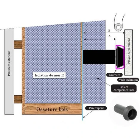 Vide technique entre le film d’étanchéité et la plaque de plâtre (aucune traversée du film)