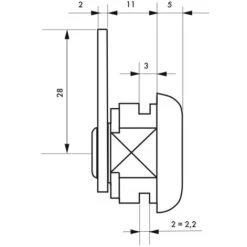 Corps alliage moulé. Mécanisme à paillettes. Came montée à 12 h. 2 clés nickelées. Clip de fixation.