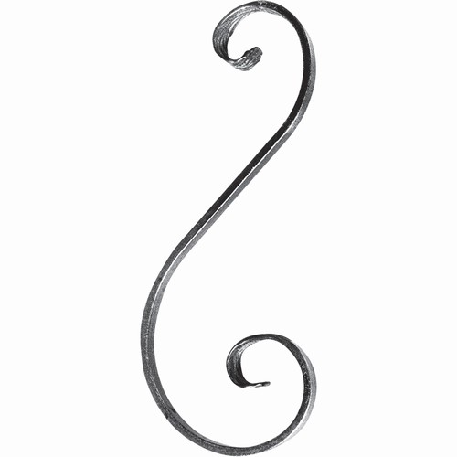 - Volute en forme de ‘S’ dĂ©calĂ© et avec une finition en queue de carpe de 270mm de haut par 110mm de large.